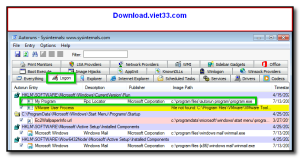 Autoruns quét hơn 20 vị trí khởi động trong Windows, bao gồm: