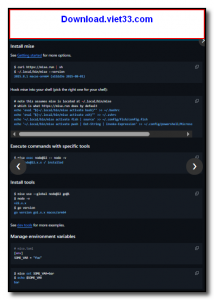 Tích hợp thông minh với shell: Mise hỗ trợ Bash, Zsh, Fish… giúp bạn thao tác nhanh và liền mạch.